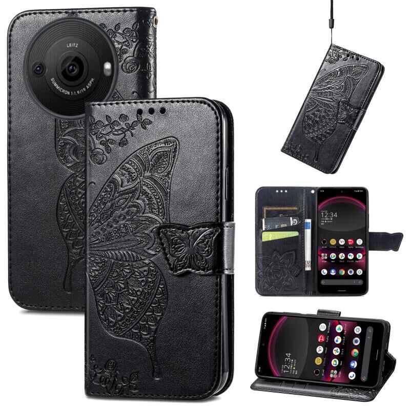 Θήκη τηλεφώνου από δέρμα με ανάγλυφο σχέδιο λουλουδιών Butterfly Love για Sharp Aquos R8 Pro (Μπλε)