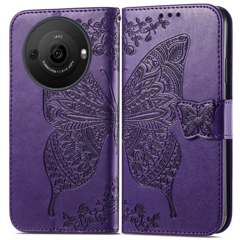 For Sharp Aquos R8 Pro Butterfly Love Flower Embossed Leather Phone Case(Purple)