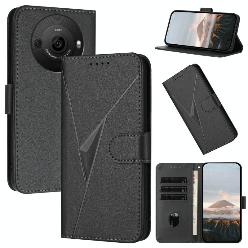 Για Sharp Aquos R8 Pro SH-51D Τρίγωνο μοτίβο πόρπη κούμπωμα Δερμάτινη θήκη τηλεφώνου (μαύρο)