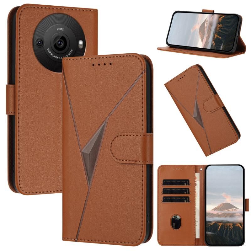 Για Sharp Aquos R8 Pro SH-51D Τρίγωνο μοτίβο πόρπη κούμπωμα Δερμάτινη θήκη τηλεφώνου (καφέ)