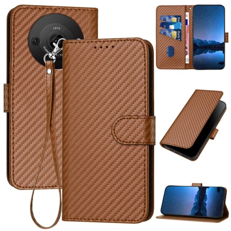 Για Sharp Aquos R8 Pro SH-51D YX0070 Carbon Fiber Πόρπη Δερμάτινη θήκη τηλεφώνου με κορδόνι (καφέ)