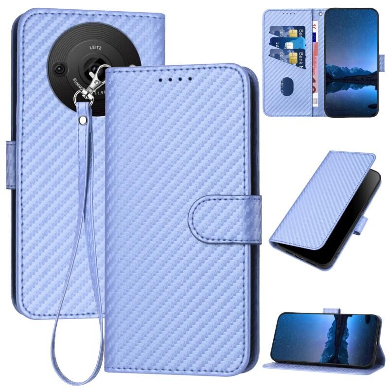 Για Sharp Aquos R8 Pro SH-51D YX0070 Carbon Fiber Πόρπη Δερμάτινη θήκη τηλεφώνου με κορδόνι (ανοιχτό μοβ)