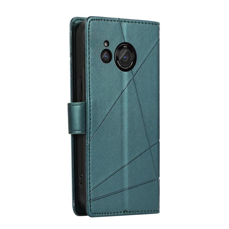 Θήκη τηλεφώνου για Sharp Aquos R8 PU με γνήσια υφή δέρματος, ανάγλυφη γραμμή (πράσινο)