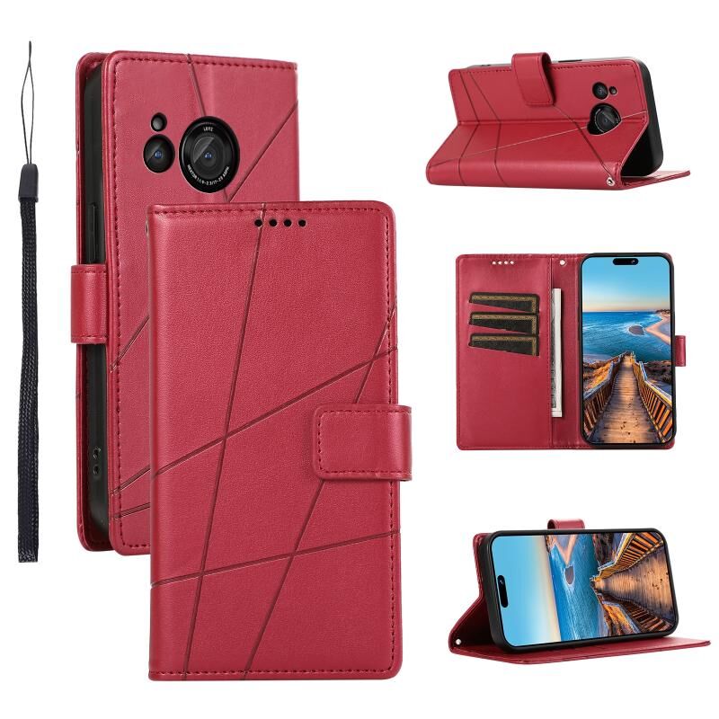 Θήκη τηλεφώνου για Sharp Aquos R8 PU με γνήσια υφή δέρματος, ανάγλυφη γραμμή (Κόκκινο)
