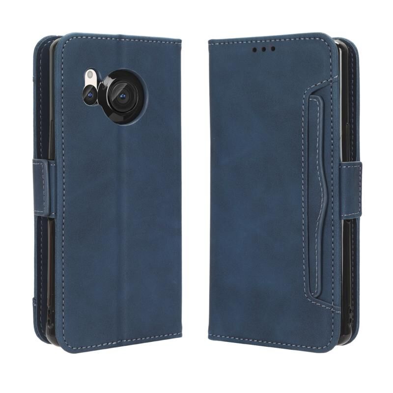 Για Sharp Aquos R8 δέρμα αίσθηση μοσχάρι υφή κάρτα υποδοχές δερμάτινη θήκη τηλεφώνου (μπλε)