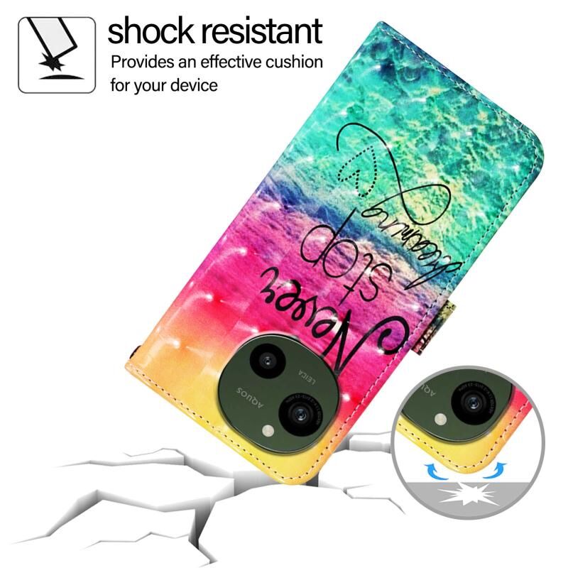 Θήκη τηλεφώνου από δέρμα με οριζόντια αναδίπλωση και τρισδιάστατη ζωγραφική για Sharp Aquos R9 (Κυνηγώντας Όνειρα)