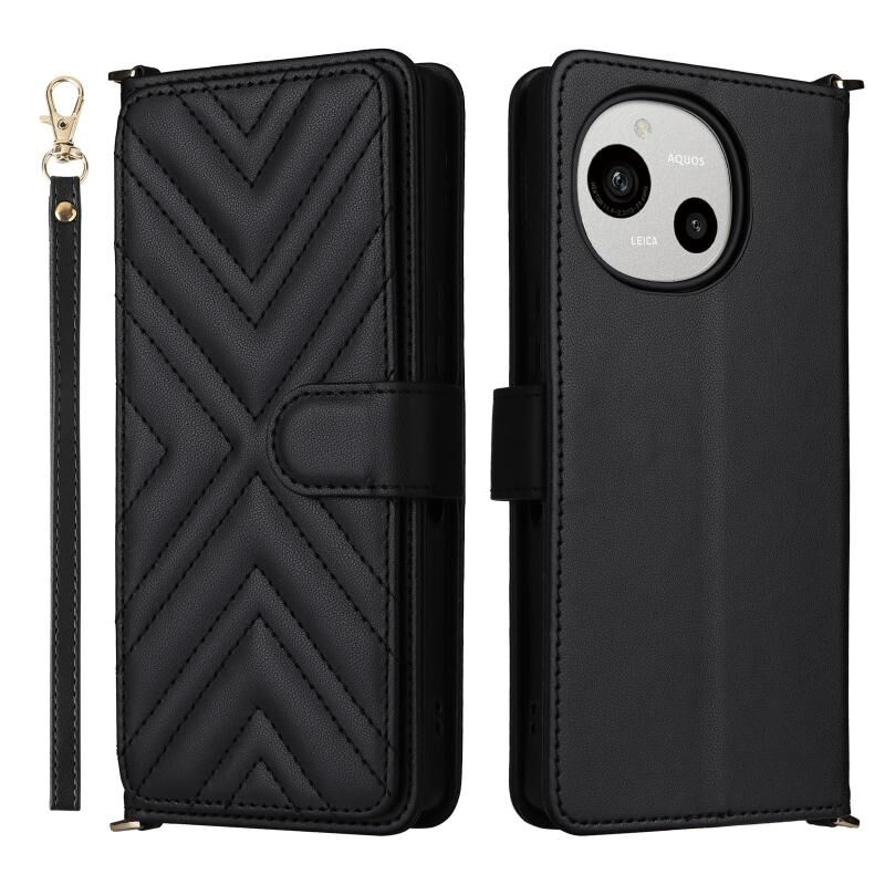For Sharp Aquos R9 Multifunctional 6-Card Slots Leather Phone Case with Wrist Strap(Black)