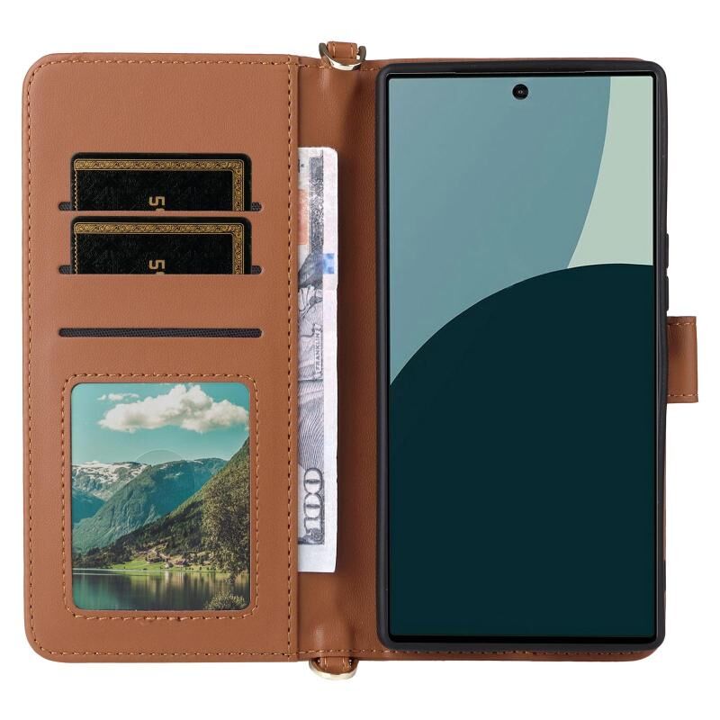 2. Wallet Function: The leather case is equipped with 6 card slots, 1 cash slot and 1 photo frame for placing cards and a small amount of cash.