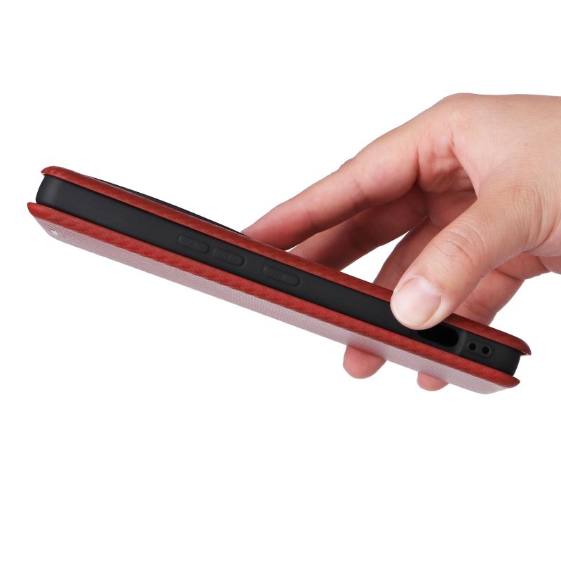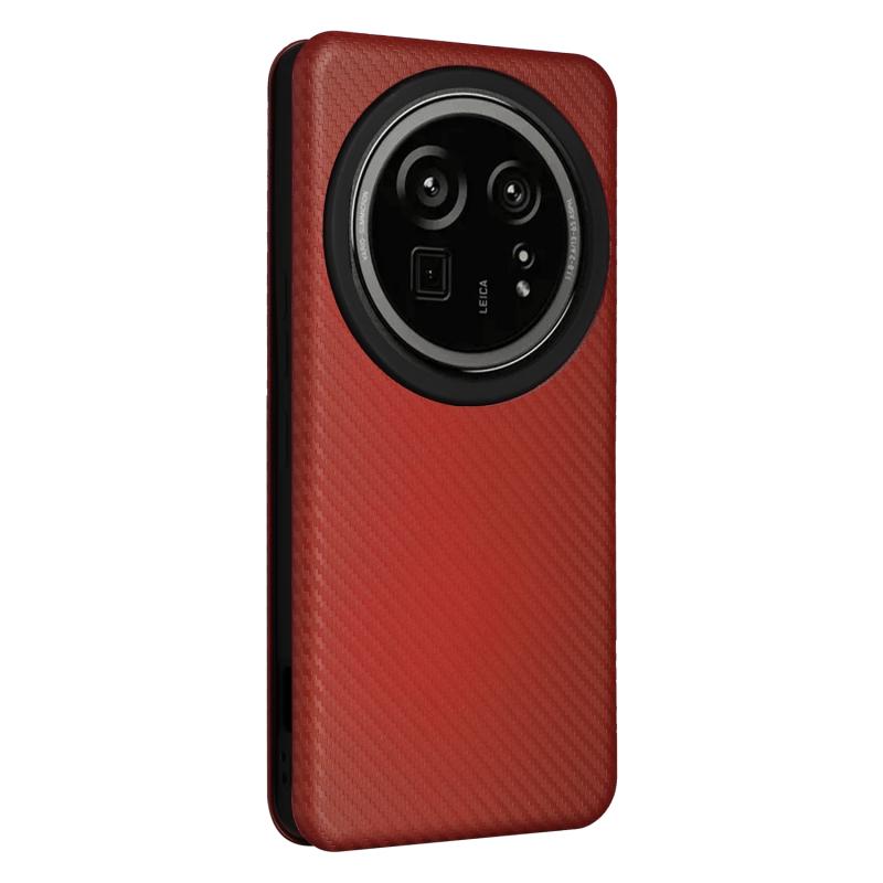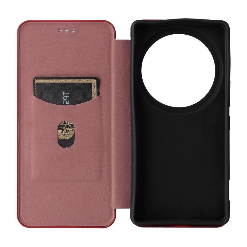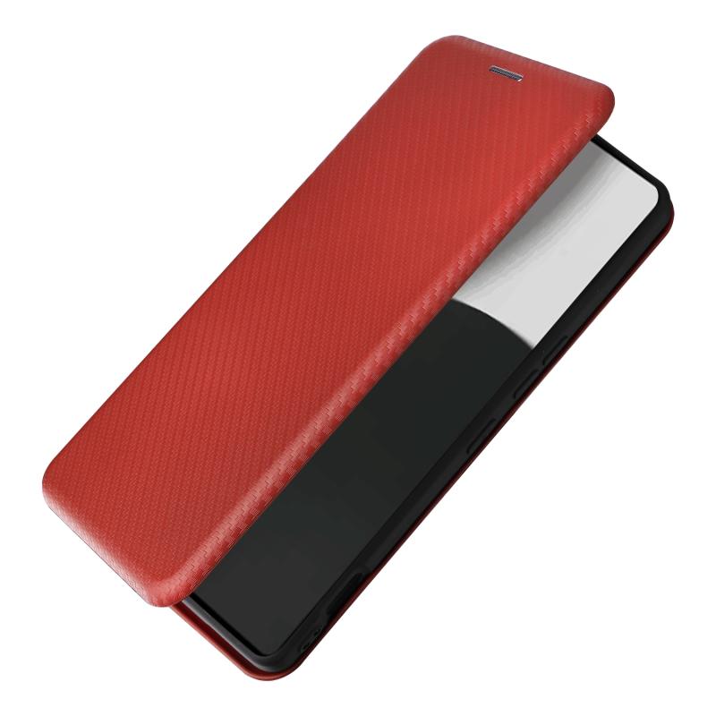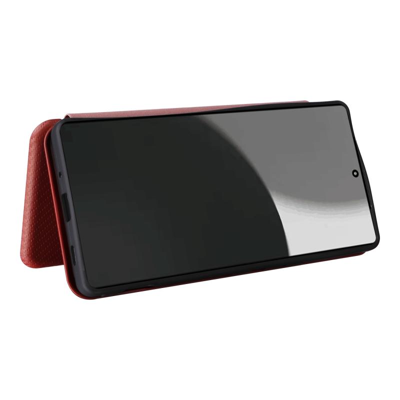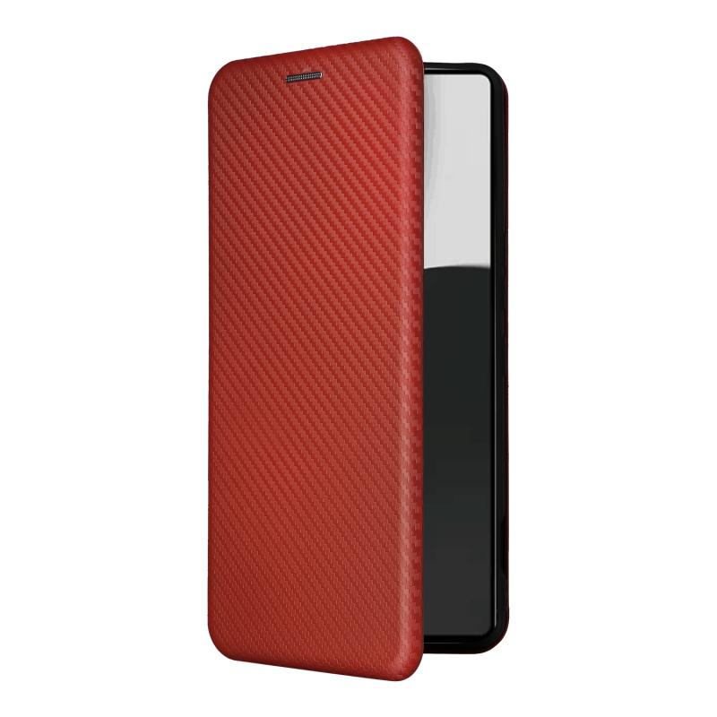 Θήκη τηλεφώνου από δέρμα με υφή ανθρακονημάτων για Sharp Aquos R9 Pro (Καφέ)