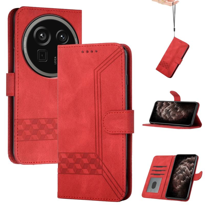For Sharp Aquos R9 Pro Cubic Skin Feel Flip Leather Phone Case(Red)