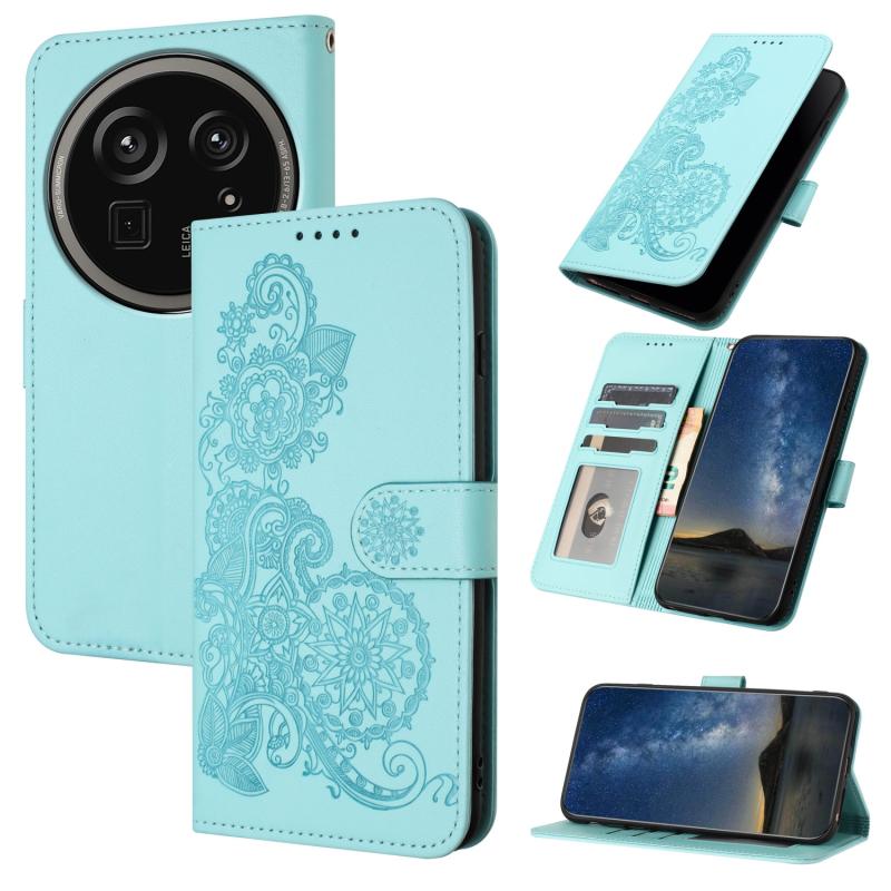 For Sharp Aquos R9 Pro Datura Flower Embossed Flip Leather Phone Case(Light blue)