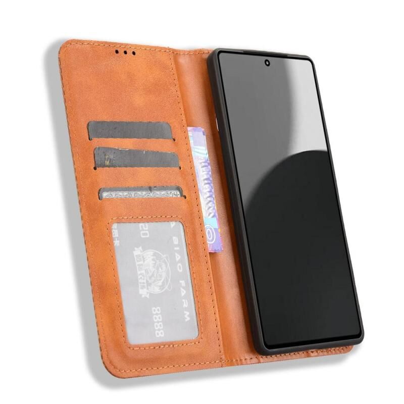 Για το Sharp Aquos R9 Pro Μαγνητική πόρπη ρετρό υφή δερμάτινη θήκη τηλεφώνου (Καφέ)