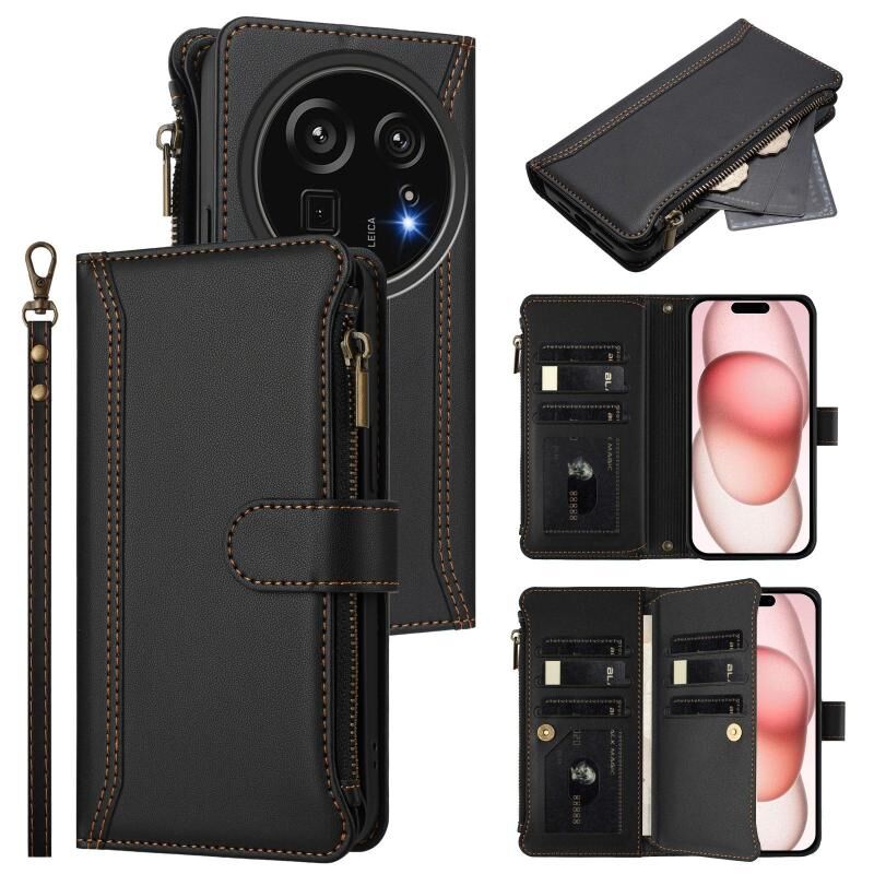 For Sharp Aquos R9 Pro Magnetic Closure 9 Card Slots Zipper Leather Case with Hand Strap(Black)
