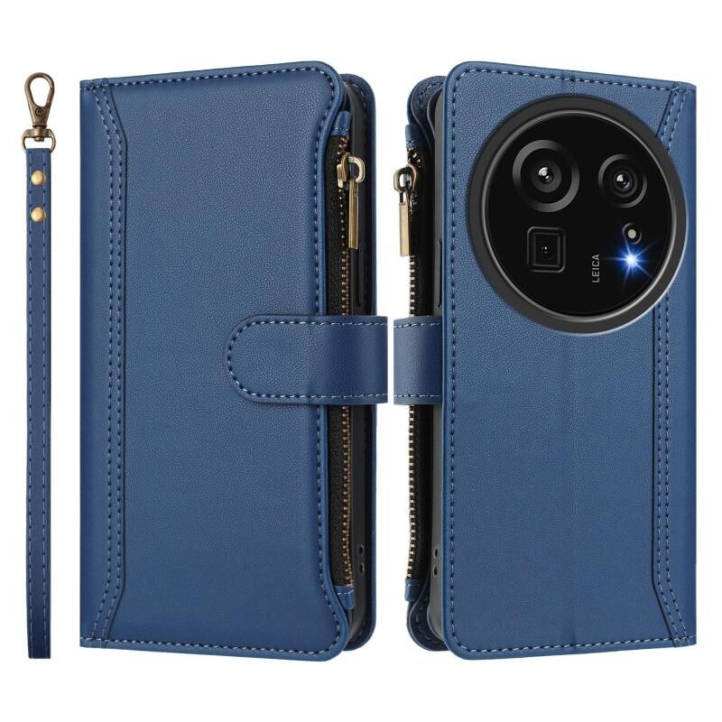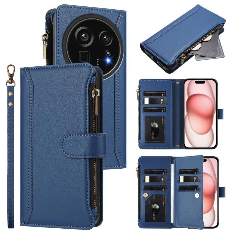 For Sharp Aquos R9 Pro Magnetic Closure 9 Card Slots Zipper Leather Case with Hand Strap(Dark Blue)
