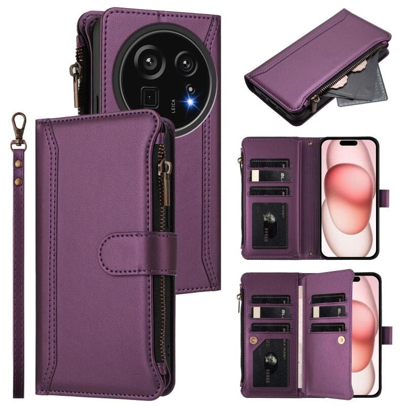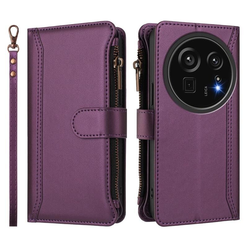 For Sharp Aquos R9 Pro Magnetic Closure 9 Card Slots Zipper Leather Case with Hand Strap(Purple)