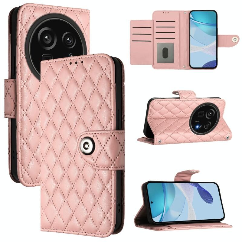 Θήκη τηλεφώνου από δέρμα με ανάγλυφη υφή ρόμβου για Sharp Aquos R9 Pro με κορδόνι (Κόκκινο)