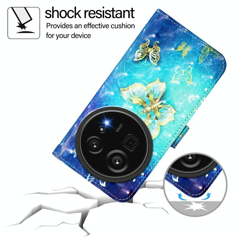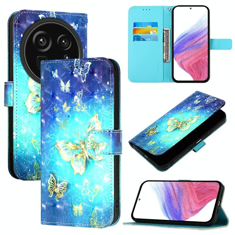 Θήκη τηλεφώνου από δέρμα με οριζόντια αναδίπλωση και τρισδιάστατη ζωγραφική για Sharp Aquos R9 Pro SH-54E (Χρυσή Πεταλούδα)