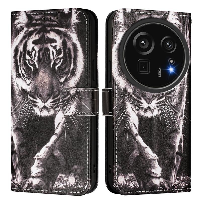 For Sharp Aquos R9 Pro SH-54E Colored Drawing Pattern Plain Weave Leather Phone Case(Black And White Tiger)