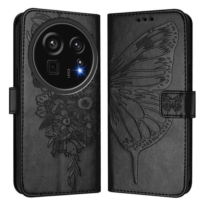 Θήκη τηλεφώνου από δέρμα με ανάγλυφο σχέδιο πεταλούδας για Sharp Aquos R9 Pro / SH-54E (Μαύρο)