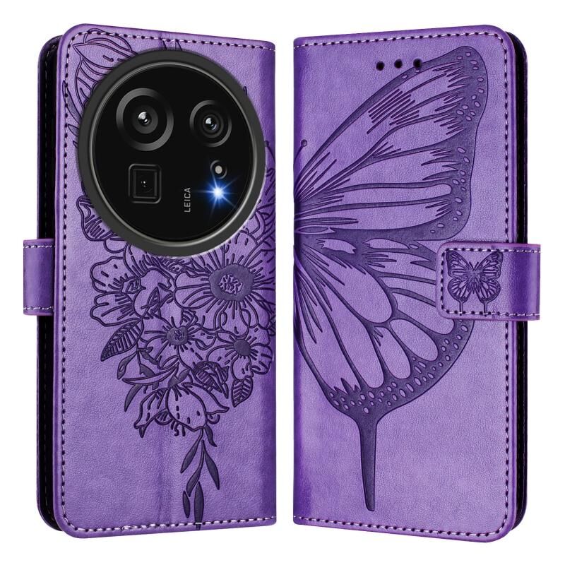 For Sharp Aquos R9 Pro / SH-54E Embossed Butterfly Leather Phone Case(Light Purple)