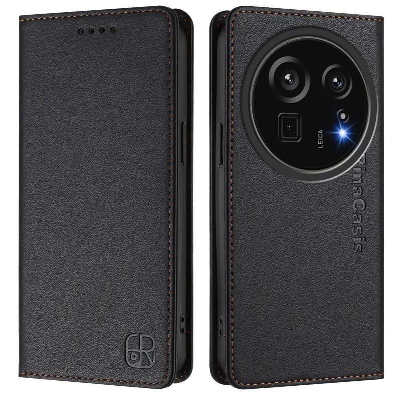 For Sharp Aquos R9 Pro SH-54E RC01 Dual-Folded Magnetic Suction RFID Leather Phone Case(Black)