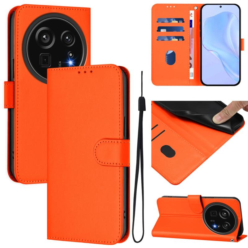 For Sharp Aquos R9 Pro SH-54E Skin Feel Solid Color Leather Phone Case with Lanyard(Orange)