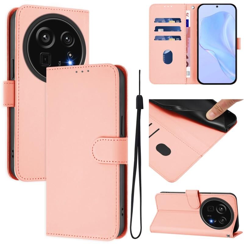 For Sharp Aquos R9 Pro SH-54E Skin Feel Solid Color Leather Phone Case with Lanyard(Pink)