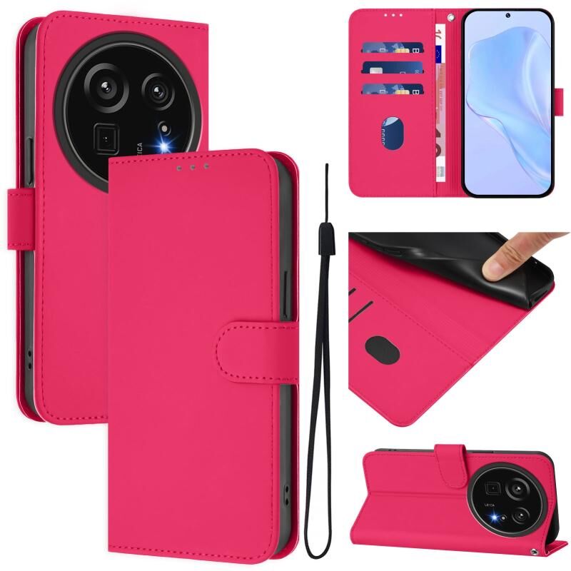 For Sharp Aquos R9 Pro SH-54E Skin Feel Solid Color Leather Phone Case with Lanyard(Rose Red)