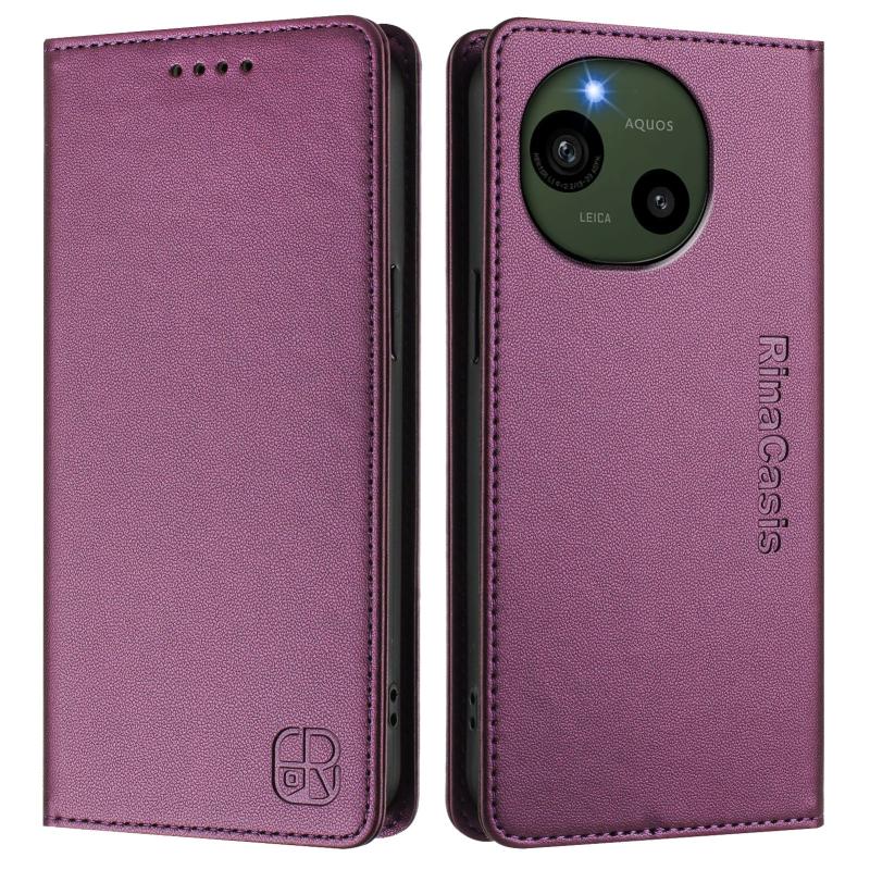 For Sharp Aquos R9 SH-51E RC01 Dual-Folded Magnetic Suction RFID Leather Phone Case(Violet)