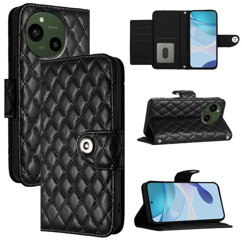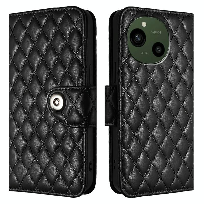 Για το Sharp Aquos R9 SH-51E Rhombic Texture Flip δερμάτινη θήκη τηλεφώνου με κορδόνι (μαύρο)