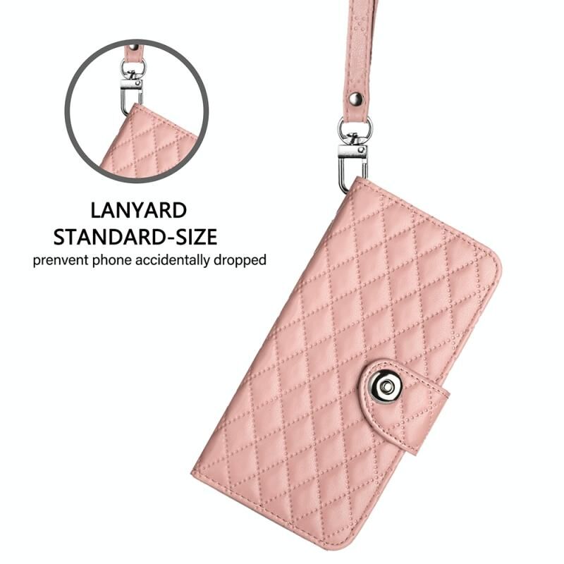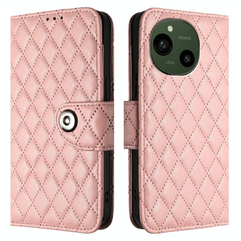 Για το Sharp Aquos R9 SH-51E Rhombic Texture Flip δερμάτινη θήκη τηλεφώνου με κορδόνι (Coral Pink)