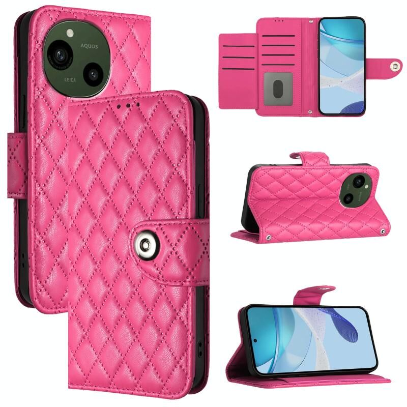 Για το Sharp Aquos R9 SH-51E Rhombic Texture Flip δερμάτινη θήκη τηλεφώνου με κορδόνι (Rose Red)