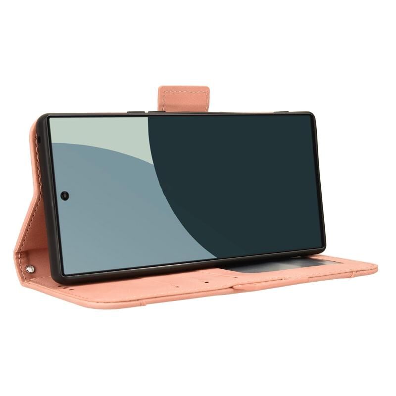 Για Sharp Aquos R9 δέρμα αίσθηση μοσχάρι υφή κάρτα υποδοχές δερμάτινη θήκη τηλεφώνου (ροζ)