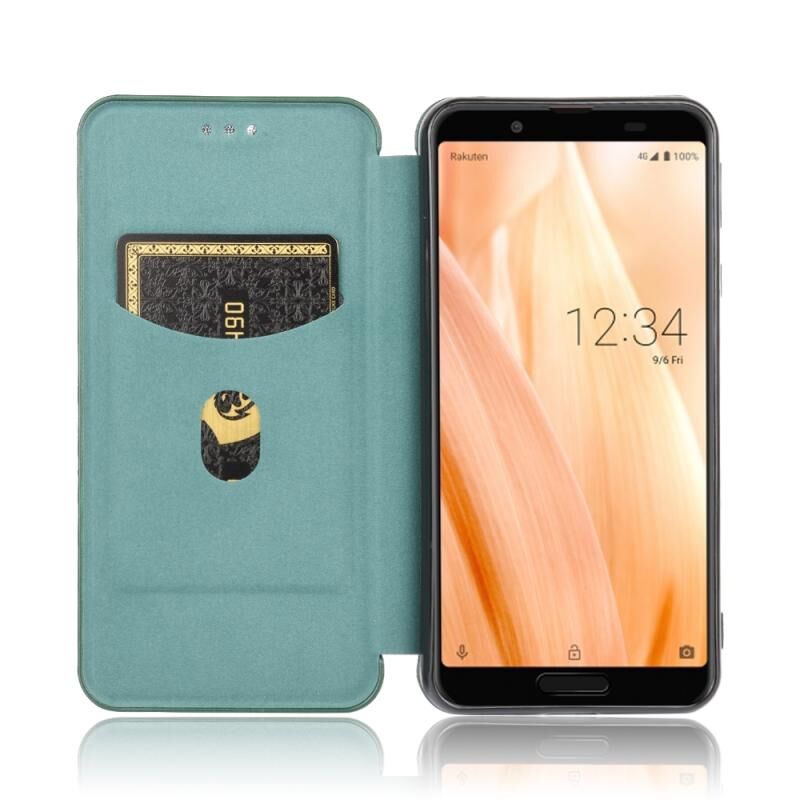 Για το Sharp Aquos Sense 3 Lite Carbon Fiber Texture Horizontal Flip TPU + PC + PU Leather Case με υποδοχή κάρτας (πράσινο)