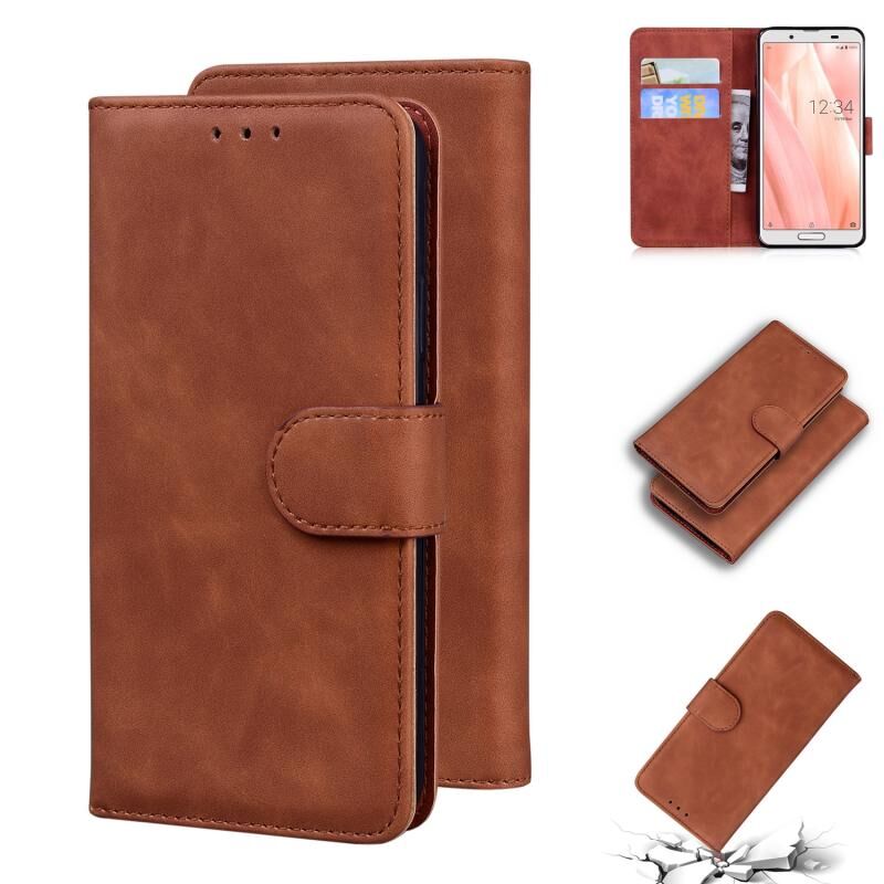 Για το Sharp Aquos Sense 3 / Sense3 Lite / Sense3 Basic & SHV45 Skin Feel Pure Color Leather Phone Case (Brown)