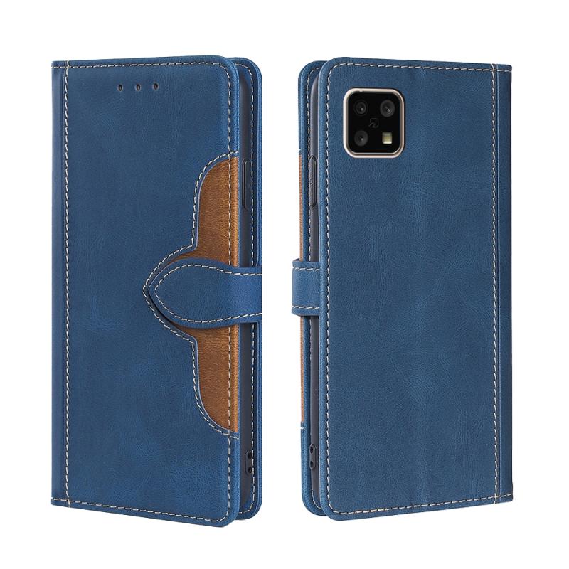 Θήκη τηλεφώνου από δέρμα με μαγνητικό κούμπωμα και αίσθηση καλαμιού για Sharp Aquos Sense 4 4G/5G (Μπλε)