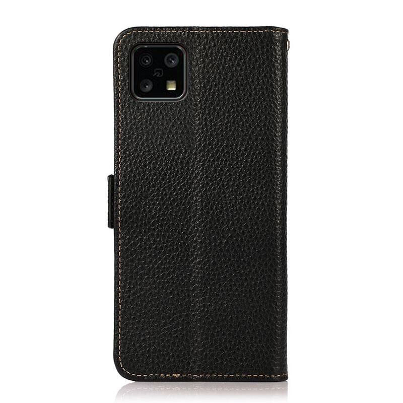 Θήκη τηλεφώνου με μαγνητικό κλείσιμο και γνήσιο δέρμα Litchi για Sharp Aquos Sense 4 KHAZNEH (Μαύρο)