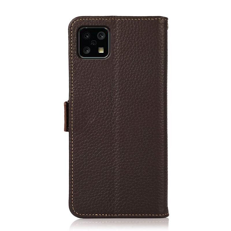 Θήκη τηλεφώνου με μαγνητικό κλείσιμο και γνήσιο δέρμα Litchi για Sharp Aquos Sense 4 KHAZNEH (Μαύρο)