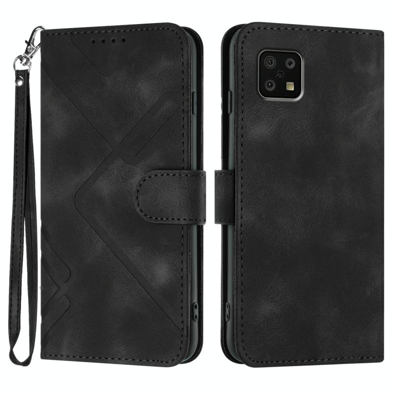 For Sharp Aquos Sense 6/Aquos Sense6s Line Pattern Skin Feel Leather Phone Case(Black)