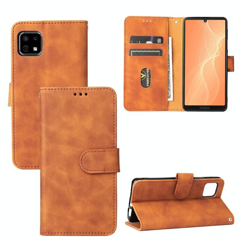 Για το Sharp Aquos Sense 6 Solid Color Skin Feel Magnetic Buckle Horizontal Flip Calf Texture PU Leather Case with Holder & Card Slots & Wallet (Brown)