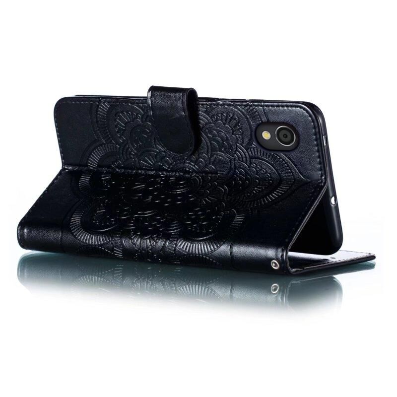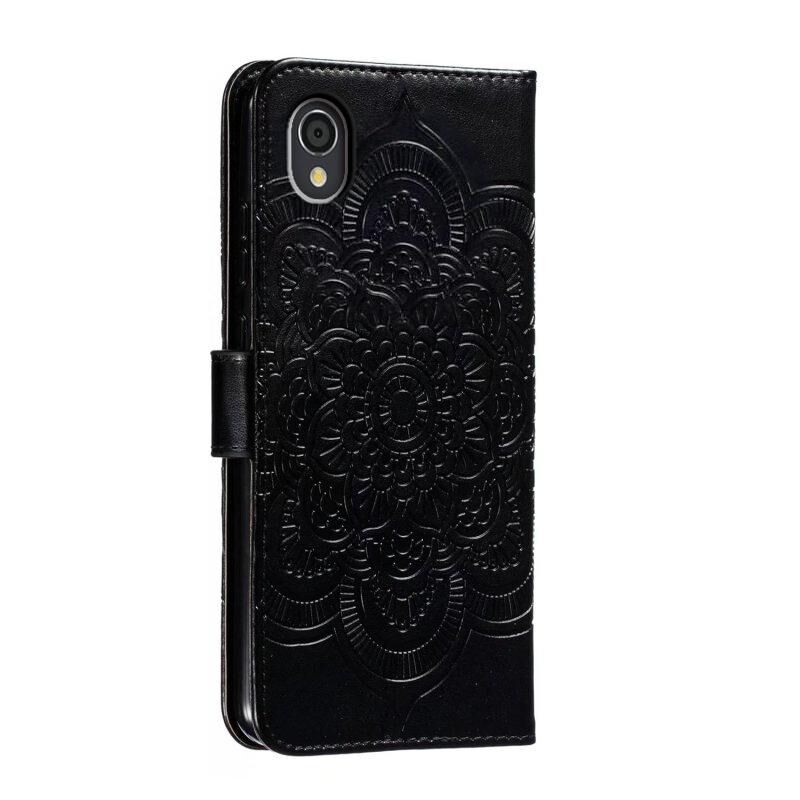 Για Sharp Aquos Sense2 Sun Mandala ανάγλυφο μοτίβο τηλέφωνο δερμάτινη θήκη (Μαύρο)