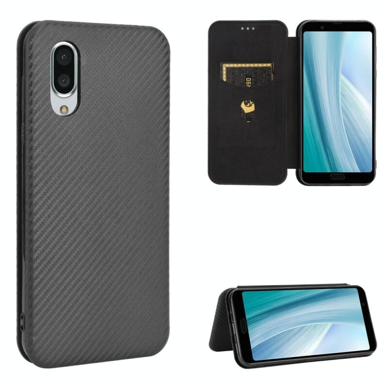 Για το Sharp Aquos Sense3 Plus SH-RM11 Carbon Fiber Texture Horizontal Flip TPU + PC + PU Leather Case με υποδοχή κάρτας (μαύρο)