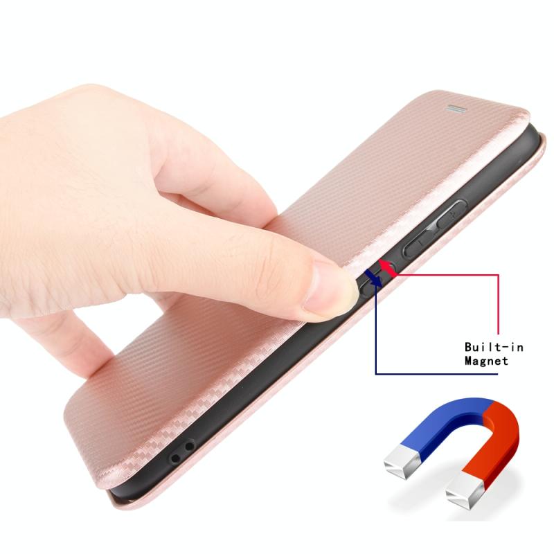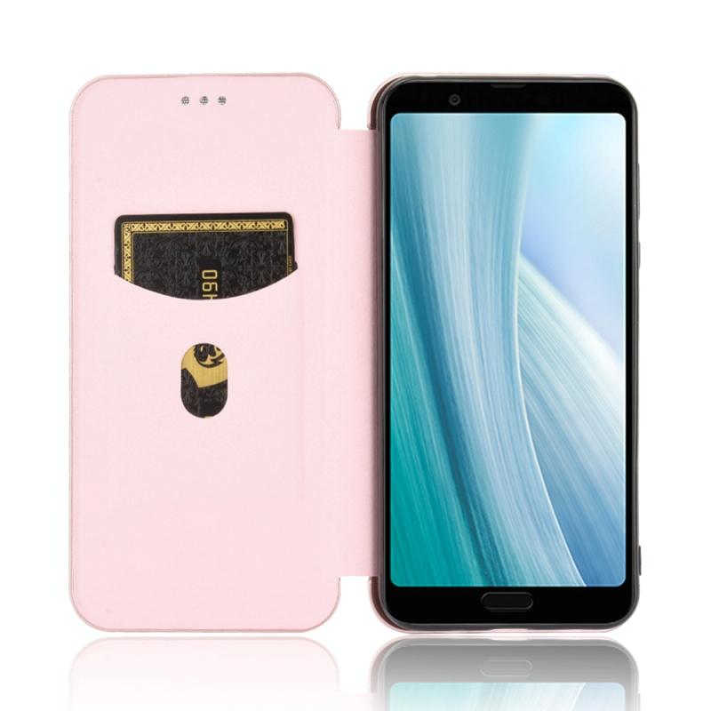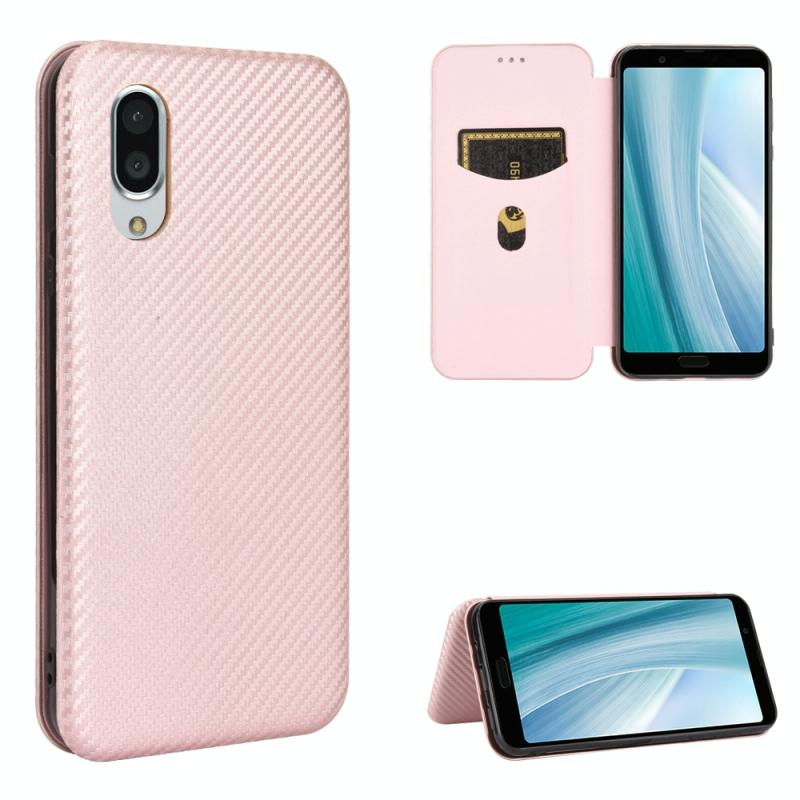 For Sharp Aquos Sense3 Plus SH-RM11 Carbon Fiber Texture Horizontal Flip TPU + PC + PU Leather Case with Card Slot(Pink)