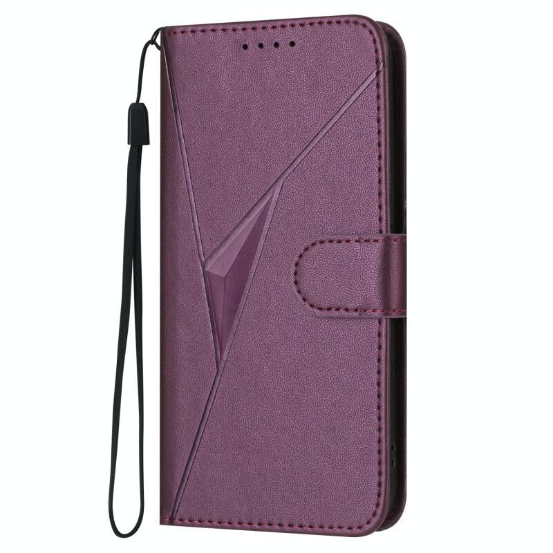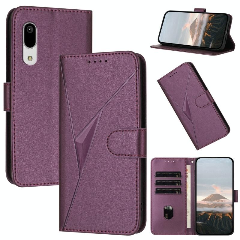 Για Sharp Aquos Sense3 Τρίγωνο μοτίβο αγκράφα κούμπωμα δερμάτινη θήκη τηλεφώνου (Σκούρο μωβ)