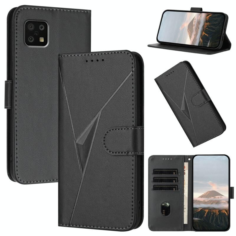 Για Sharp Aquos Sense6 Τρίγωνο μοτίβο αγκράφα κούμπωμα δερμάτινη θήκη τηλεφώνου (μαύρο)
