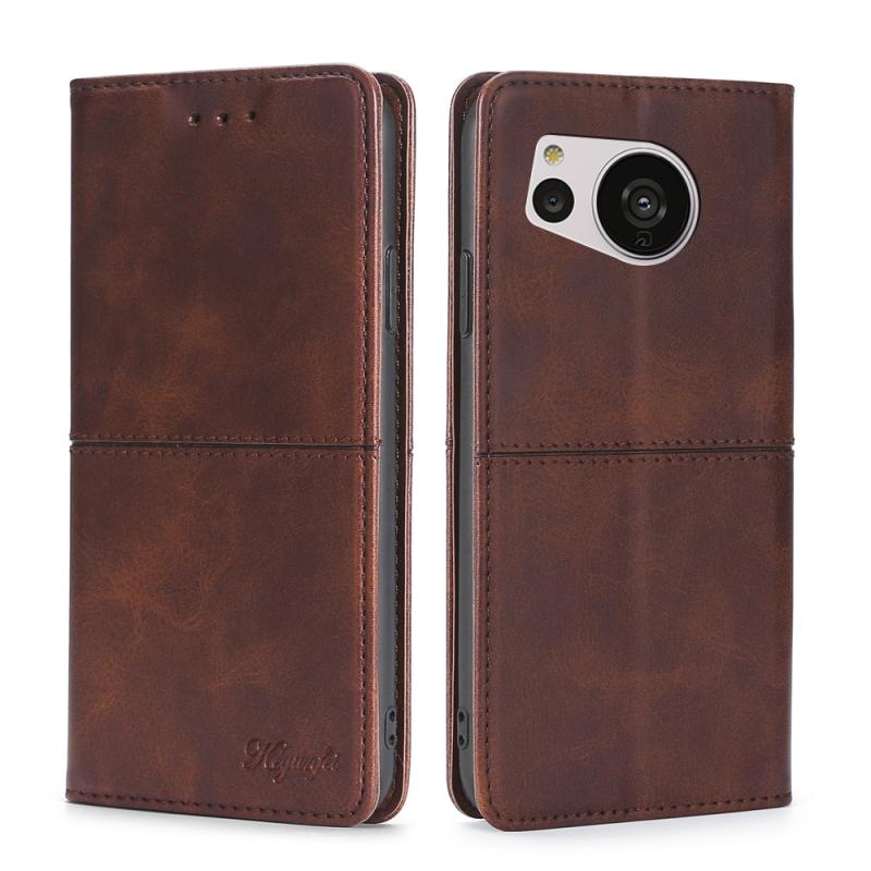 Θήκη τηλεφώνου από μαγνητικό δέρμα με υφή αγελάδας για Sharp Aquos Sense7 (Σκούρο καφέ)