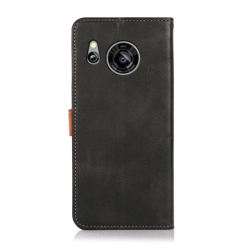Θήκη τηλεφώνου από δέρμα με υφή δερμάτινου μοσχαριού διχρωμίας για Sharp Aquos Sense7 KHAZNEH (Μαύρο)