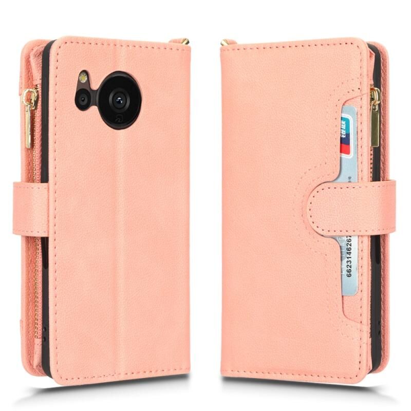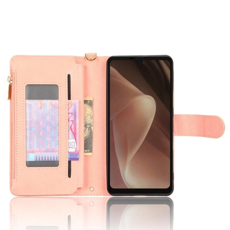 Για Sharp Aquos Sense7 Litchi υφή φερμουάρ δερμάτινη θήκη τηλεφώνου (ροζ)