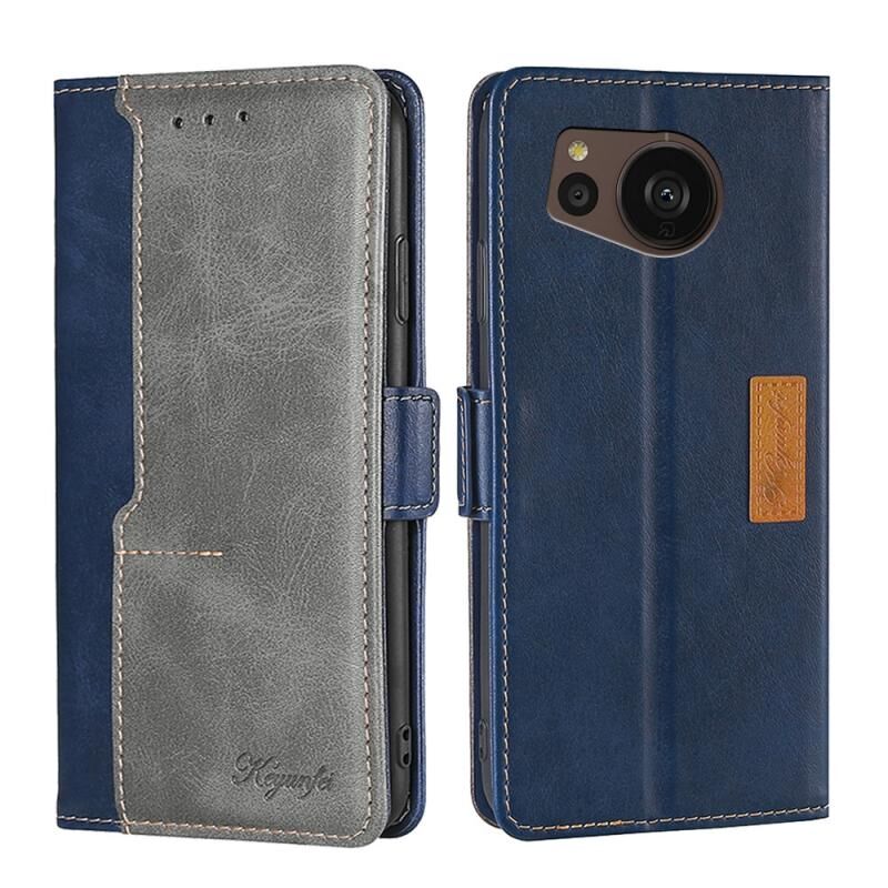 Για Sharp Aquos sense7 Plus αντίθεση χρώμα πλευρά πόρπη δερμάτινη θήκη τηλεφώνου υπόθεση (μπλε + γκρι)