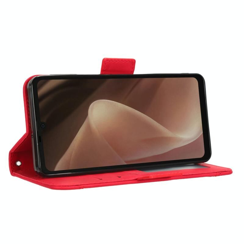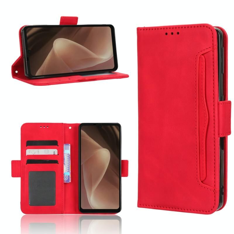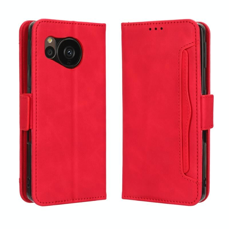 Για Sharp Aquos Sense7 Plus δέρμα αίσθηση μοσχάρι υφή κάρτα υποδοχές δερμάτινη θήκη τηλεφώνου (κόκκινο)